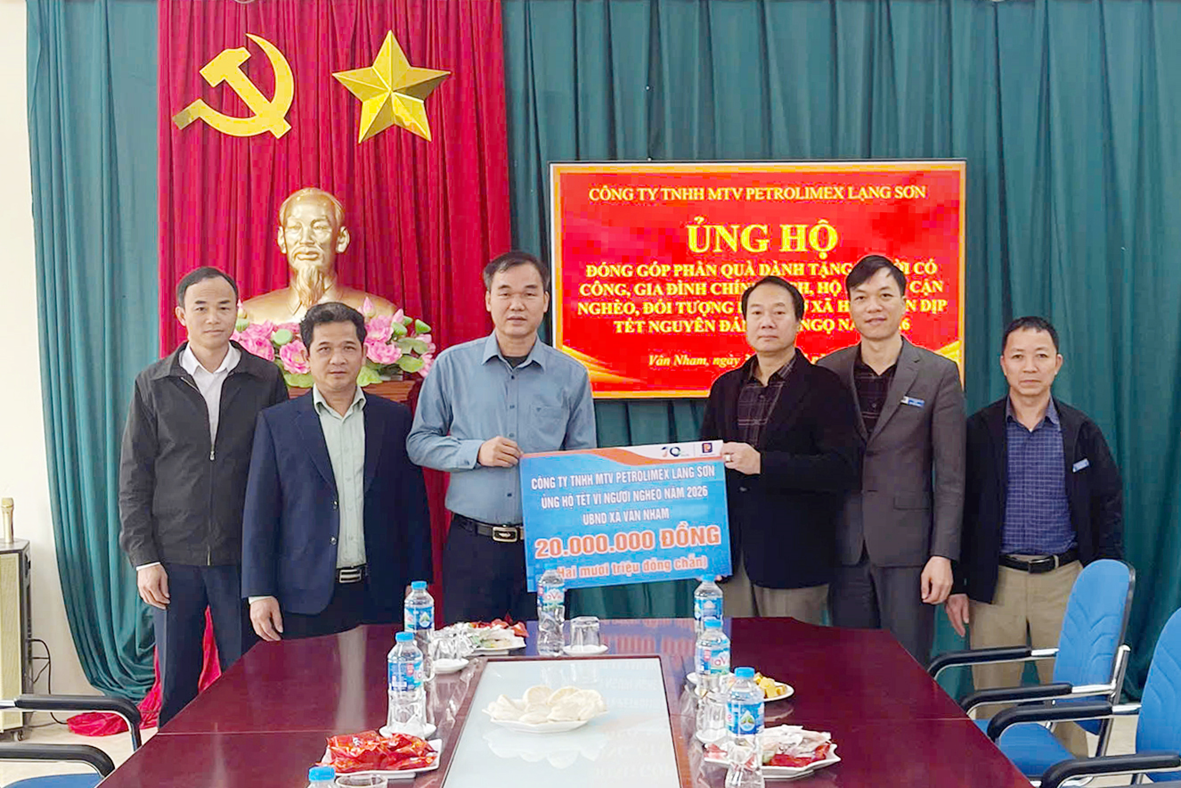 Sáng ngày 02/02/2026, Công ty TNHH MTV Petrolimex Lạng Sơn, với sự ủy quyền của Tập đoàn Xăng dầu Việt Nam (Petrolimex), đã tổ chức trao tặng 300 suất quà Tết (mỗi suất trị giá 1.000.000 đồng) thông qua Ủy ban MTTQVN tỉnh Lạng Sơn để hỗ trợ các gia đình hộ nghèo và các em học sinh nghèo vượt khó học tốt trên địa bàn tỉnh Lạng Sơn nhân dịp Tết Nguyên đán 2026. Tổng trị giá quà Tết là 300.000.000 đồng (Ba trăm triệu đồng).